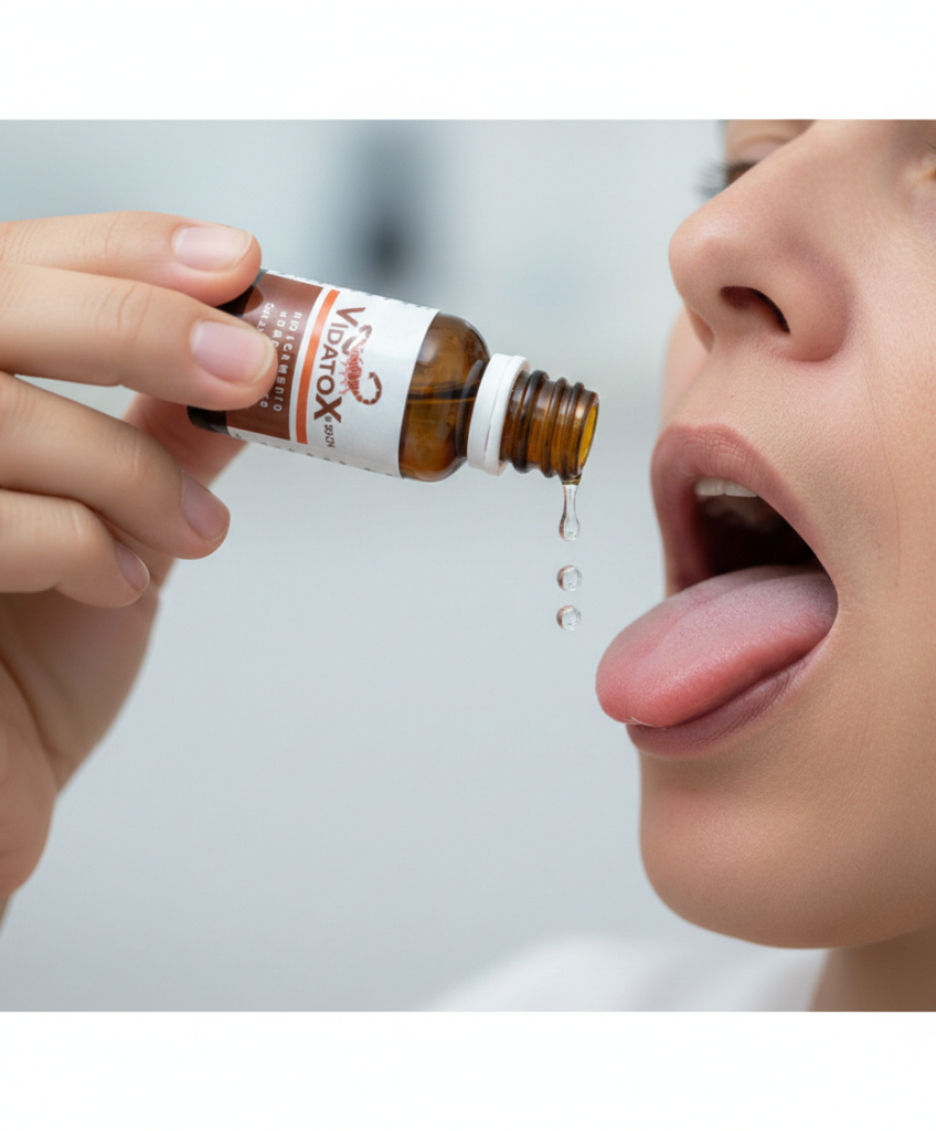 Vidatox contiene una base alcohólica como parte de su formulación. Diluir las gotas en agua hasta que el paciente las tolere adecuadamente, o Suspender su uso si genera molestia o irritación.